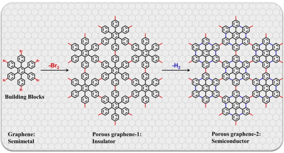 石墨烯具有非常好的电学性能,比如很高电子迁移率。但是由于石墨烯没有带隙,这极大限制它在电子器件方面的应用。打开石墨烯的带隙,使之能作为下一代电子器件的电荷传输层是目前研究的一个热点。该领域的挑战是能够合成具有带隙可调的二维石墨烯。