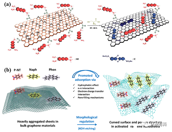 多维石墨烯结构对水环境中的有机污染物具有高效的去除性能,在吸附和膜分离领域有着广泛的应用。文中详细介绍了近年来具有代表性的研究结果,从吸附量,水通量以及排斥率总结了不同维度石墨烯材料对有机污染物的去除性能。此外,总结了污染物去除过程中的吸附和膜分离机理。其中吸附机理包括π-π相互作用、氢键、静电相互作用、疏水作用等。而膜分离机理包括层间距调控、孔隙(缺陷)以及表面含氧官能团。
