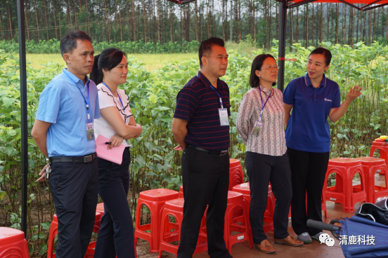 图:清鹿首席科学家周铭博士(右一)为鹿寨县鹿寨县人民政府副县长黄副县长(右二)、鹿寨县农业农村局局长 陈可春(右三)、鹿寨县人民政府办公室副主任 刘慧(左二)、鹿寨县汇一联城市开发投资有限责任公司董事长 廖庆红(左一)进行讲解