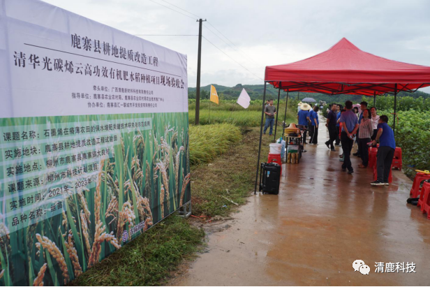 2021年10月9日广西清鹿新材料科技有限责任公司参与建设的鹿寨县耕地提质改造工程里的清华光碳烯云高功效有机肥水稻种植项目中种植的水稻已经成熟,达到收割条件。于鹿寨县鹿寨镇大良村举行现场验收会。邀请了出席本次现场会的领导有:柳州市科技局党组成员卢波;鹿寨县人民政府副县长黄旭慧;柳州市农业农村局推广科科长 韦柳;鹿寨县人民政府办公室副主任刘慧;鹿寨县农业农村局局长陈可春;鹿寨县汇一联城市开发投资有限责任公司董事长廖庆红。出席本次现场会的专家有:柳州市农业农村局技术推广中心高级农艺师谢燕青;鹿寨县农业农村局技术推广中心农艺师韦璐如;鹿寨县农业农村局技术推广中心高级农艺师覃喜强。感谢前来进行对清华光碳烯云高功效有机肥水稻种植项目产量和应用效果的验收进行监督与指导。