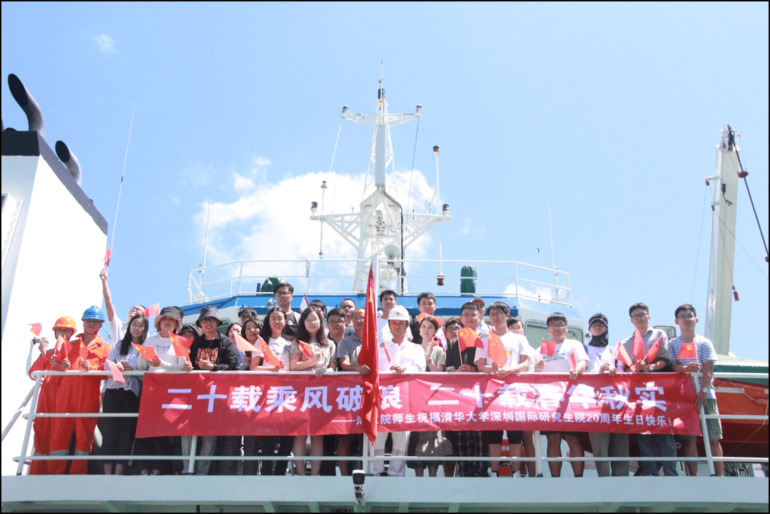 师生们在“清研海试1”试验母船上表达对学院20周年的祝福