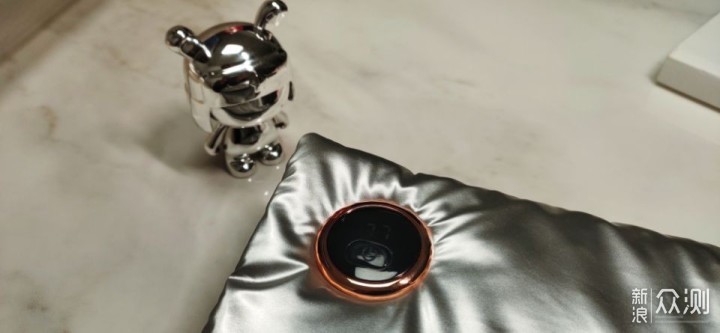 整体的重量非常轻便,和生活中常见的暖水袋简直是天壤之别,不仅是重量方面在颜值方面也是非常大的突破。仅重140g拿在手里非常轻薄让我一度怀疑真的可以暖和达到同样的效果吗?这里先买个关子在后续会介绍使用体验,其次正面的一块圆形的屏幕不仅可以实时了解到当前的温度状况,短按还可以进行档位的切换(低档37℃、中档45℃、高档55℃),一键实现多功能操作。