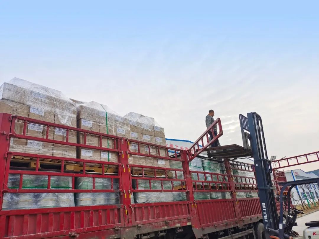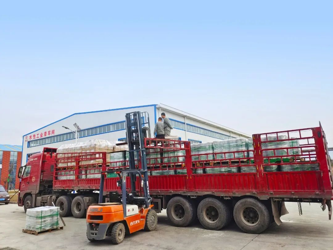 近日,我公司生产的应用用于石油管道设备的50吨重防腐涂料,发往石油设备施工现场。