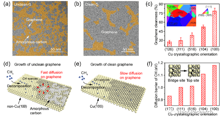 图1 铜晶面对石墨烯薄膜本征洁净度的影响及相关机理分析