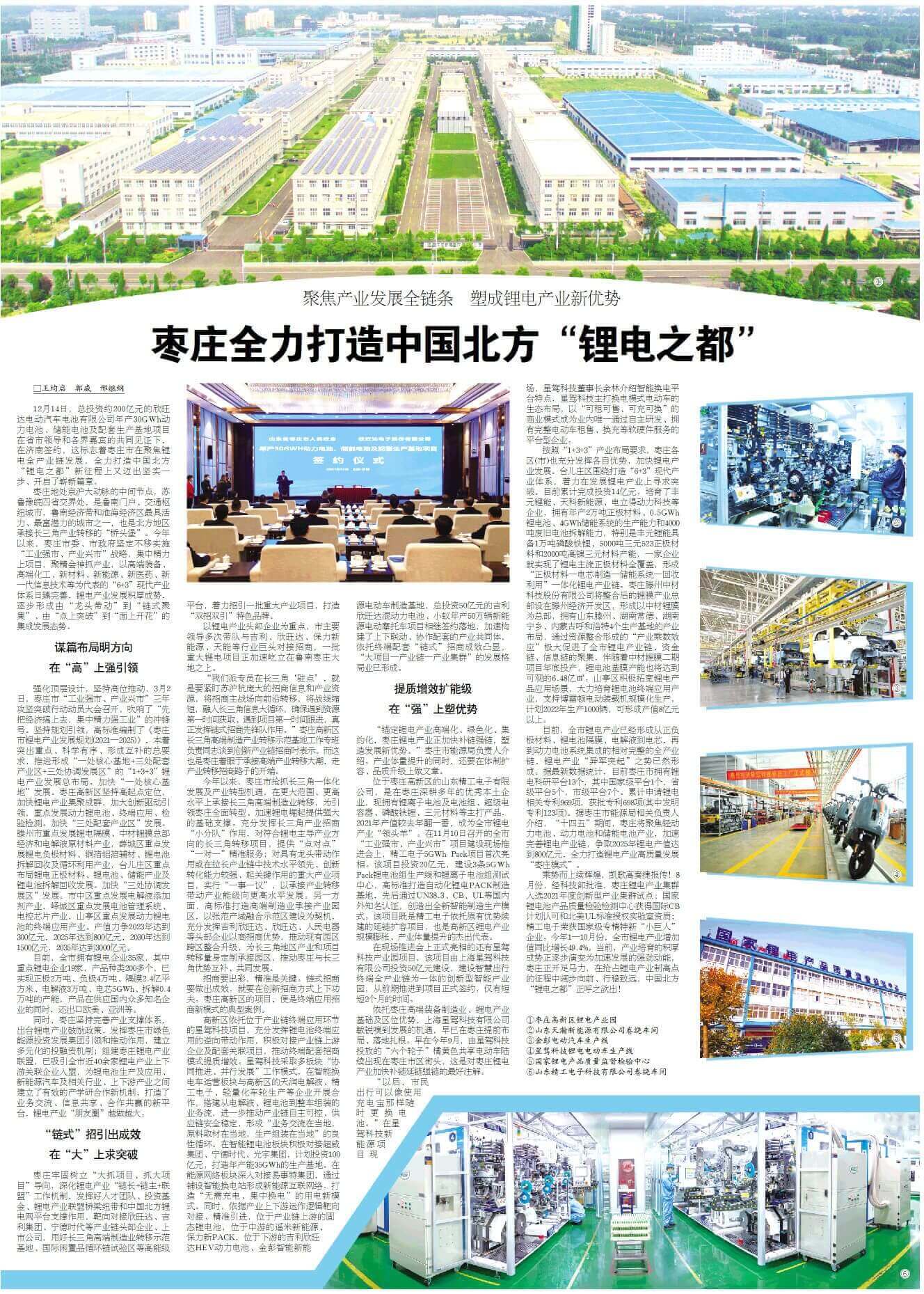 “锚定锂电产业高端化、绿色化、集约化,枣庄锂电产业正加快补链强链,塑造发展新优势。”枣庄市能源局负责人介绍。产业体量提升的同时,还要在体制扩容、品质升级上做文章。