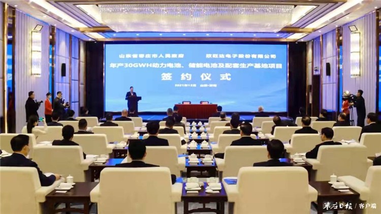 12月14日,12月14日上午,枣庄市人民政府与欣旺达电子股份有限公司在山东大厦签署《年产30GWh动力电池、储能电池及配套生产基地项目投资协议》,这标志着枣庄市在聚焦锂电全产业链发展,全力打造中国北方“锂电之都”新征程上又迈出坚实一步、开启了崭新篇章。