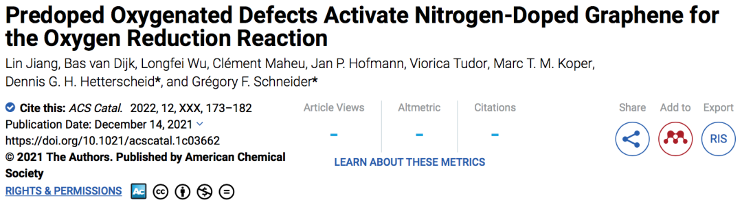 Lin Jiang, et al, Predoped Oxygenated Defects Activate Nitrogen-Doped Graphene for the Oxygen Reduction Reaction, ACS Catal. 2022