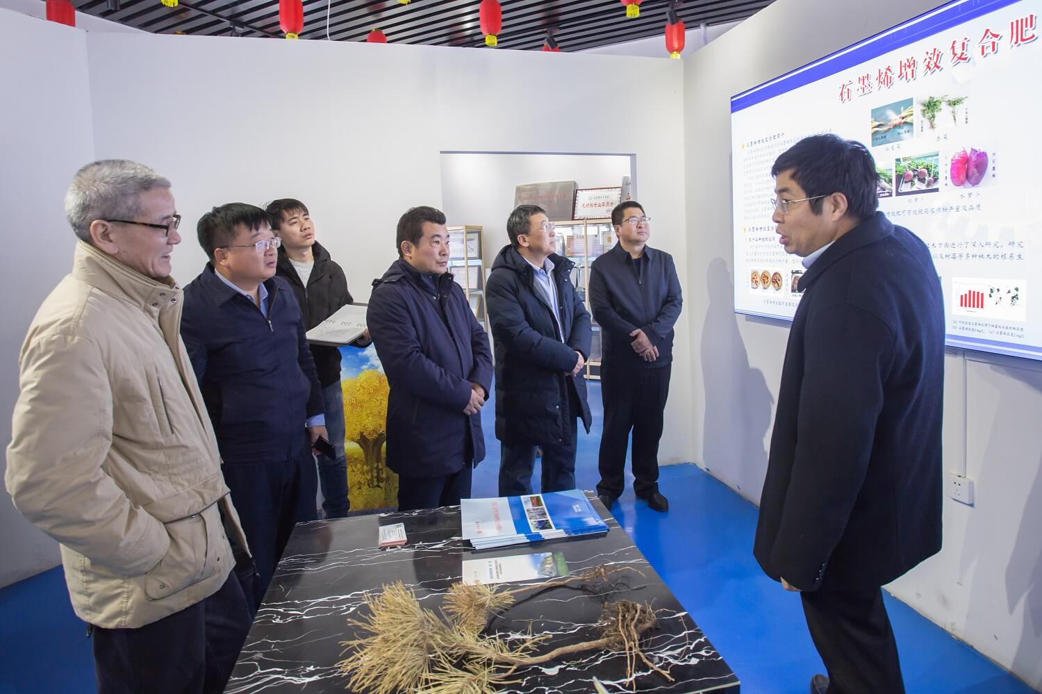 调研组一行首先听取了赵建国的工作汇报。炭材料研究所目前的开发与利用主要集中在石墨烯水性防腐涂料、石墨烯规模化制备工艺、石墨烯增效复合肥等方面。其中,石墨烯增效复合肥对增强植物的抗干旱性和耐盐碱性具有显著效果,在农业领域发挥着重要作用。