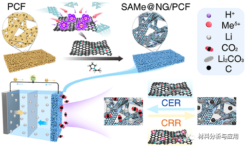 为了验证 DFT 计算的有效性,开发了一种两步法在多孔碳泡沫 ( SAMe@NG /PCF)上制造SAMe@NG ,负载量约为 8 wt%。与理论计算一致,具有SACr@NG /PCF 正极的电池表现出优异的倍率性能和循环能力,具有较长的循环寿命在100 μA cm−2电流密度的循环寿命超过350次。这项工作不仅展示了可逆Li-CO2电池的催化剂选择原则,而且展示了单原子催化剂的可控合成方法。
