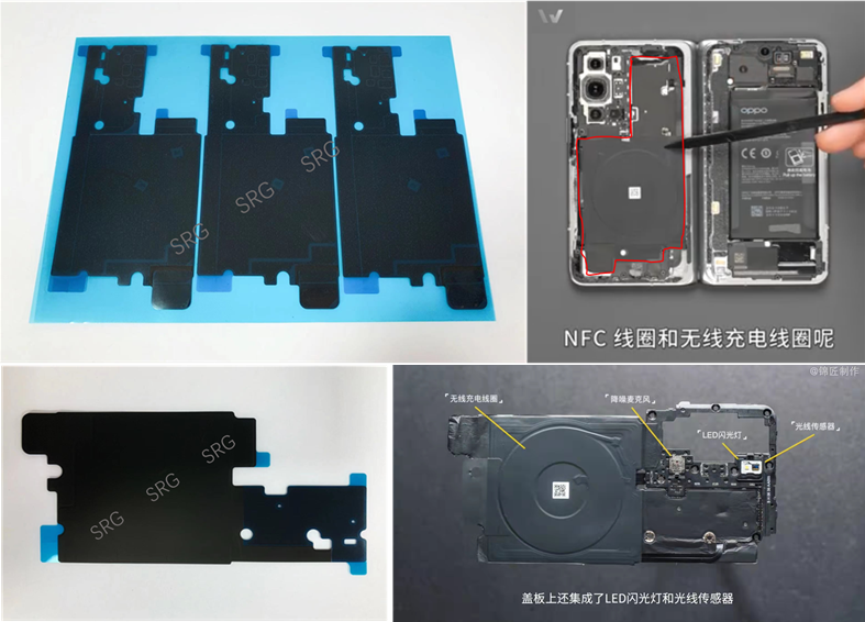 深瑞墨烯SRG石墨烯导热膜产品实物图(左)在OPPO Find N中的应用展示(右)(图来源于网络@锦匠制作)