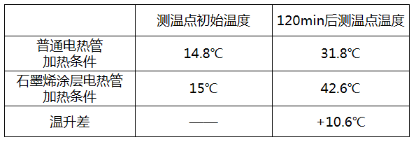 实测数据表明,环境(测温点)温升显著提升,证明喷涂石墨烯涂层后,电热管的热交换增效作用显著。可大大提升取暖器的采暖加热性能。