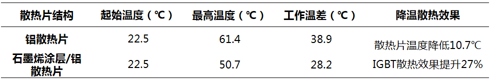 通过在铝散热片上涂覆石墨烯涂层,使散热片的散热效果大幅提升,元器件工作温度大幅降低。