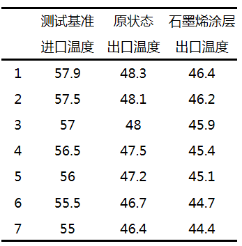 结论:带石墨烯涂层蒸发器的出水口温度比原状态降低了将近2℃,换热效果显著提升。