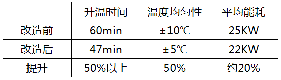 改造后,能耗更低但升温时间大幅缩短,温度均匀性大大提升。