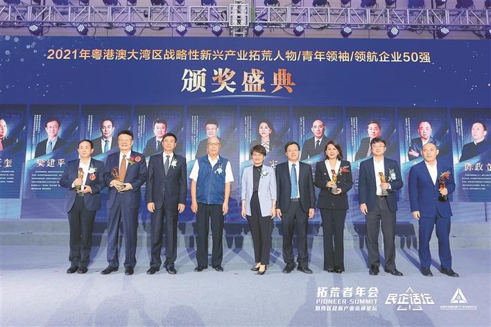 ▲吴宪(右三)获评“2021年粤港澳大湾区战略性新兴产业拓荒人物”。