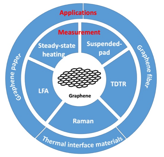 由于石墨烯的厚度为纳米尺度,商用的测量设备(激光闪光法、平板热源法等)无法准确测量,需要采用微纳尺度热测量方法。常见的微纳尺度传热测量技术包括拉曼光谱法、悬空热桥法、3ω法、时域热反射法等几种。