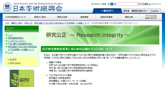 4月1日,日本最大的官方科学资助机构JSPS(日本学术振兴会)作出惩罚决定: 矢野裕太被禁止获得资助7年;他的两位导师名古屋大学教授伊丹健一郎(Kenichiro Itami)及名古屋大学副教授伊藤英人(Hideto Ito)则被JSPS禁止资助3年。