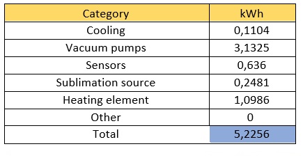 我们产品的碳足迹由生产过程中使用的各个设备的碳足迹组成,可分为以下几类:冷却、真空泵、传感器、升华源、加热元件。