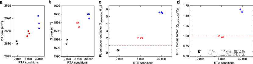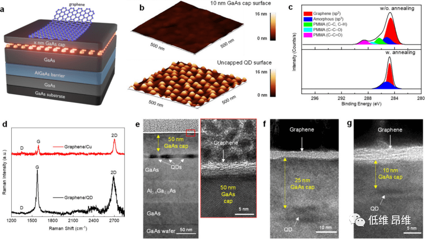 图5. 石墨烯快速热退火(RTA)条件下具有10 nm GaAs样品石墨烯/量子点混维异质结。