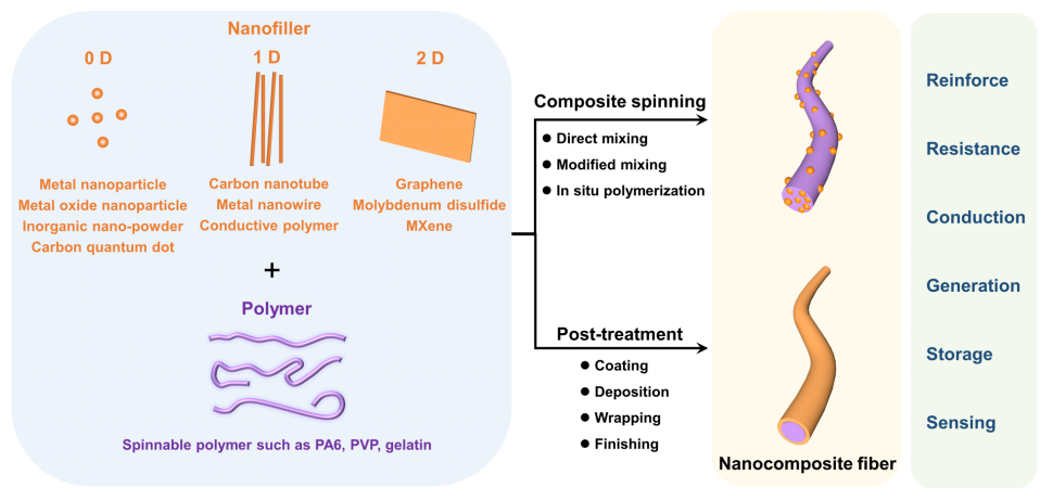 纳米复合纤维是通过引入纳米材料或纳米结构制备而成的纤维材料,具有特定的性能和功能。高分子基纳米复合纤维具有易加工、结构可调、力学性能优异、功能性多样等特性,在医疗保健、航空航天、能源存储和环境监测等领域表现出巨大的应用前景。