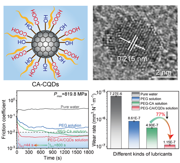 碳量子点的形貌以及复合润滑材料的液体超润滑性能。兰州化物所供图。