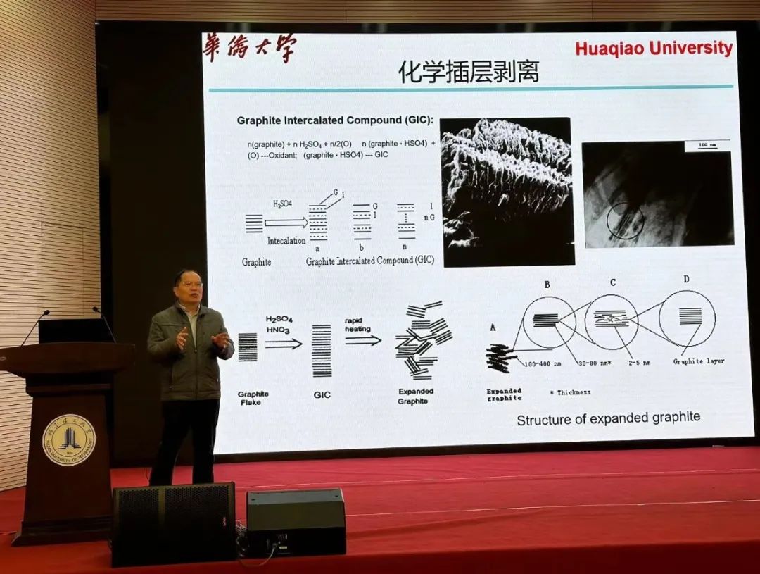 陈国华教授作为大会特邀嘉宾出席活动开幕式并作报告,在报告上陈教授介绍了多项产学研成果,分享了石墨烯领域的技术知识,并结合自己的研究生教育经历鼓励同学们在科研中多与导师交流。
