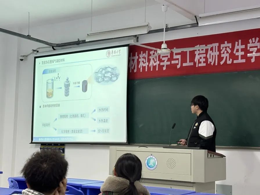 本次论坛举办的研究生学术报告我中心博士研究生杨宇辰和许景威分别作了《氧化石墨光降解和光稳定性的探索》和《石墨烯气凝胶的制备及其在空气净化领域的应用研究》汇报,另有4位同学进行了主题墙报展示。