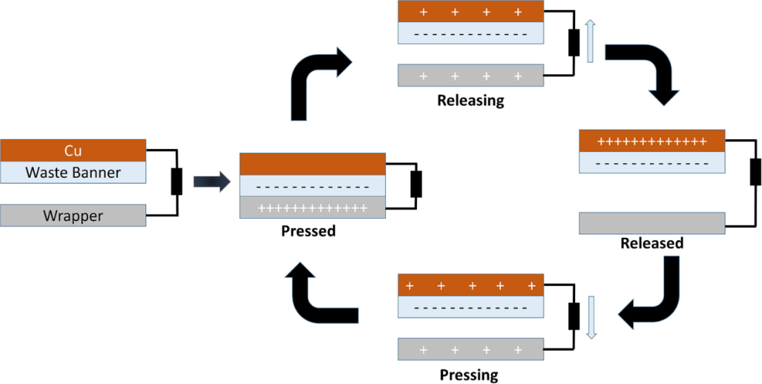 不可降解的塑料废弃物对于环境与公共健康造成了巨大的威胁,因此如何对这类废弃物进行资源化利用是一个显著的挑战。由于可用于摩擦电材料的选择对象众多,这其中便包括聚合物基材料,因此将此类废物回收并开发成摩擦纳米发电机(TENG)是一种有潜力的解决方案。已有大量前人的工作将废弃的口罩、聚酯薄膜、清洁海绵、塑胶袋、实验室垃圾、塑料瓶等回收并开发成TENG,但基于PVC的研究还尚未报导。