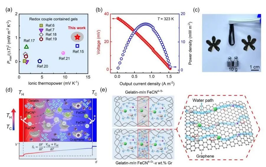 采用氧化还原偶离子作为载体的凝胶热电池可以将热量转化为电能,在低品位的热收集中发挥着重要作用。然而,由于凝胶的耐热性有限,一个主要挑战是在非室温下保持高离子热电性能。在此,广州大学牛利院士报道了石墨烯在凝胶热电池中诱导的高温离子热电性能。