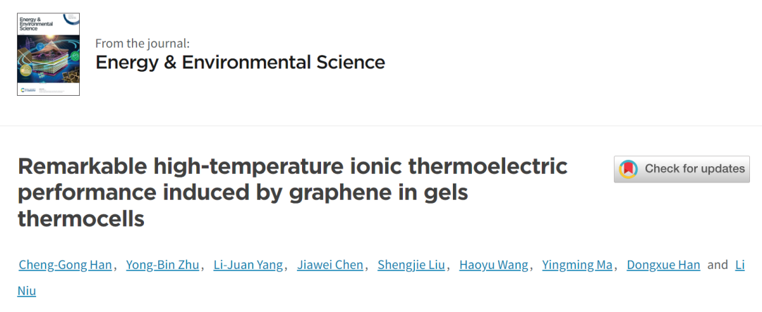 Cheng-Gong Han et.al Remarkable high-temperature ionic thermoelectric performance induced by graphene in gels thermocells EES 2023
