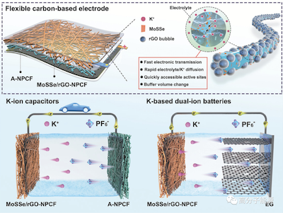 MoSSe/rGO-NPCF的结构示意图以及KICs和KDIBs的示意图。