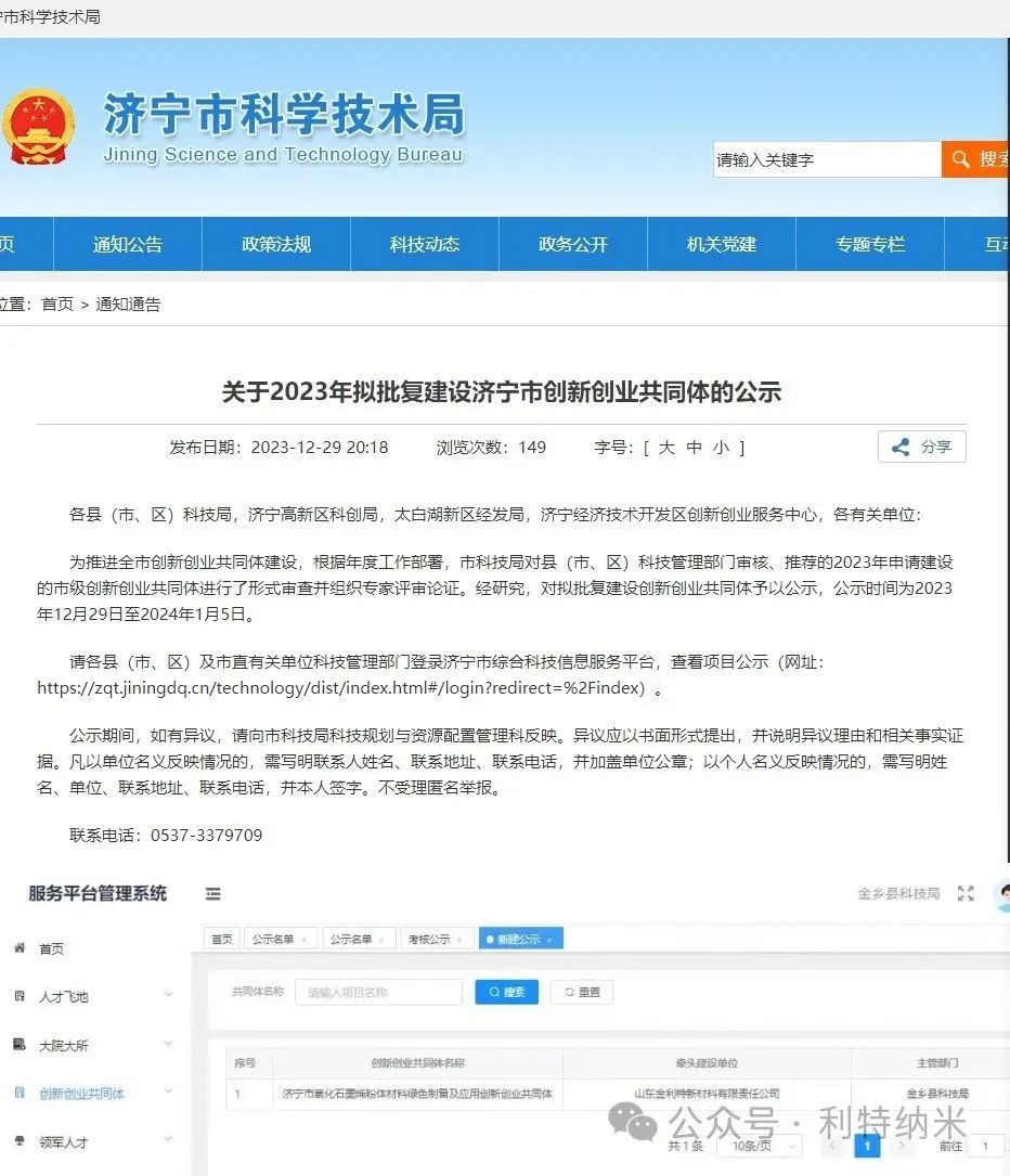 2023年12月,由公司牵头的“济宁市氧化石墨烯粉体材料绿色制备及应用创新创业共同体”获批。这是2023年度全市唯一一个获批的创新创业共同体。