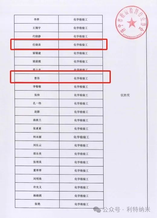 公司员工任晓弟、曹昂,在2023年度济宁市”技能状元“职业技能大赛-第一届检验检测行业获”优胜奖“