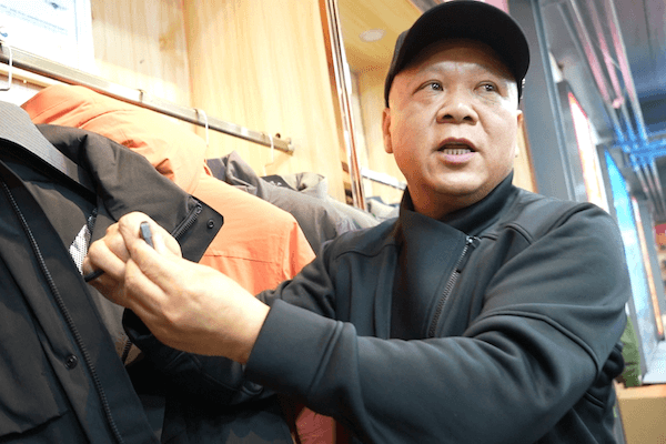 王同飞展示加热服装(央广网记者 李子平 摄)
