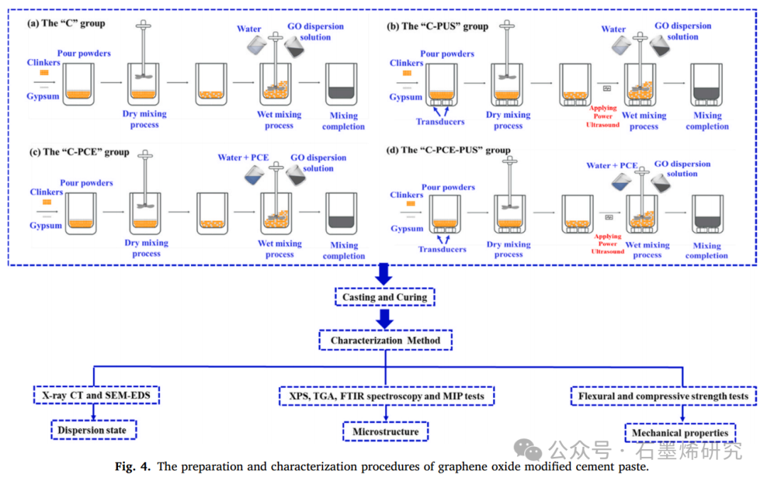 图4. 氧化石墨烯改性水泥浆体的制备及表征方法。