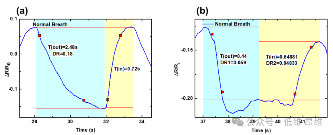 研究者进行了呼吸信号分析,旨在了解不同呼吸模式下的吸气和呼气时间,并评估封装剂和Wheatstone桥在减少交叉干扰中的作用。