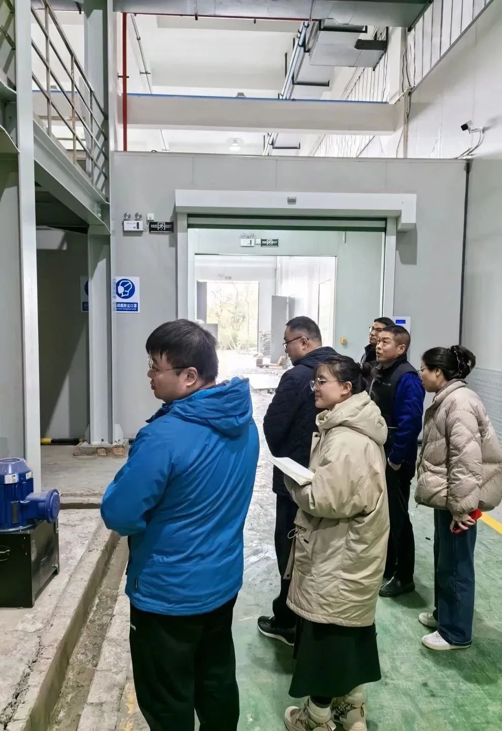 杨坤带领安健环办公室相关人员赴项目建设现场检查安全生产工作,排查中试产线、仓库、办公区域等场地安全隐患,着重检查消防设施、电气线路、化学试剂、机器设备、安全标识、人员操作等安全相关事项。