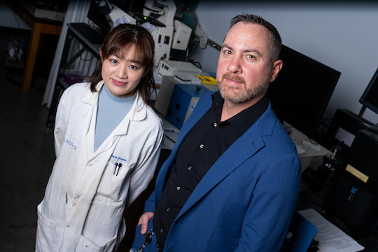 Utana Umezaki(左)和 Angel Martí(摄影:Jeff Fitlow/莱斯大学)