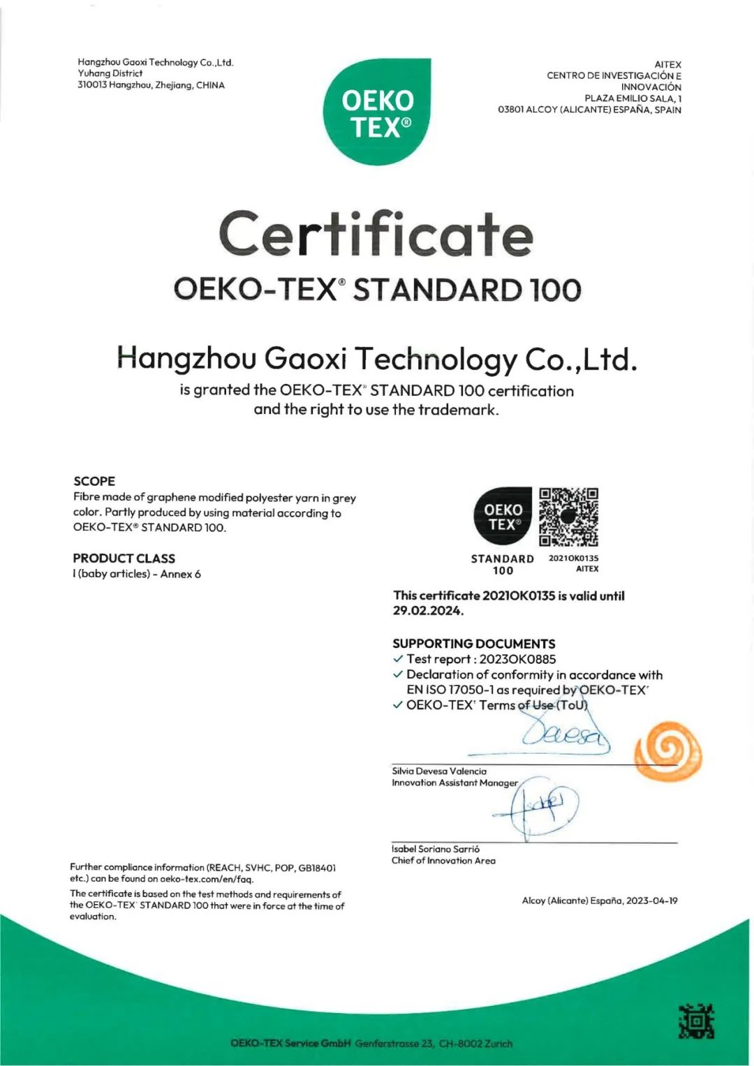 高烯®纤维,原创全套核心技术,拥有中国发明专利40项、国际专利6项,获IGCC和中国化纤协会双认证,通过国际OEKO-TEX100婴儿级生态安全认证。
