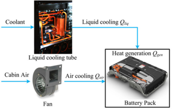 - GMG的石墨烯铝离子电池在电动汽车电池组或储能系统中使用时可能不需要热管理系统,这将导致更简单、更具成本效益和更高能量密度的电池组。大多数锂离子电池组都需要热管理系统,如下图 2 所示。