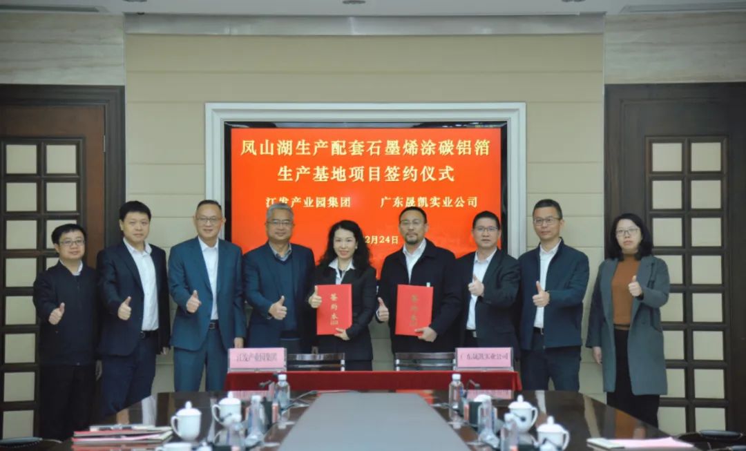 2月24日上午,元宵节当天,江门发展集团下属板块企业江门市江发产业园投资开发集团有限公司与广东晟凯金属实业有限公司在江门发展集团举办凤山湖生产配套项目——石墨烯涂碳铝箔生产基地签约仪式。市国资委党委委员、副主任林劲松,江门发展集团党委书记、董事长张义栋,市商务局党组成员、副局长杨华强 ,市工信局副局长张健钰以及新会区国资办、新会区工业园区管委会等相关领导出席活动并见证签约。