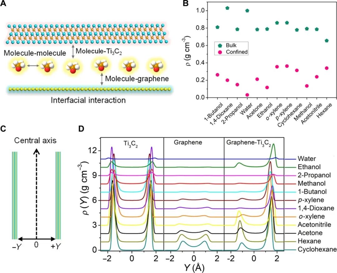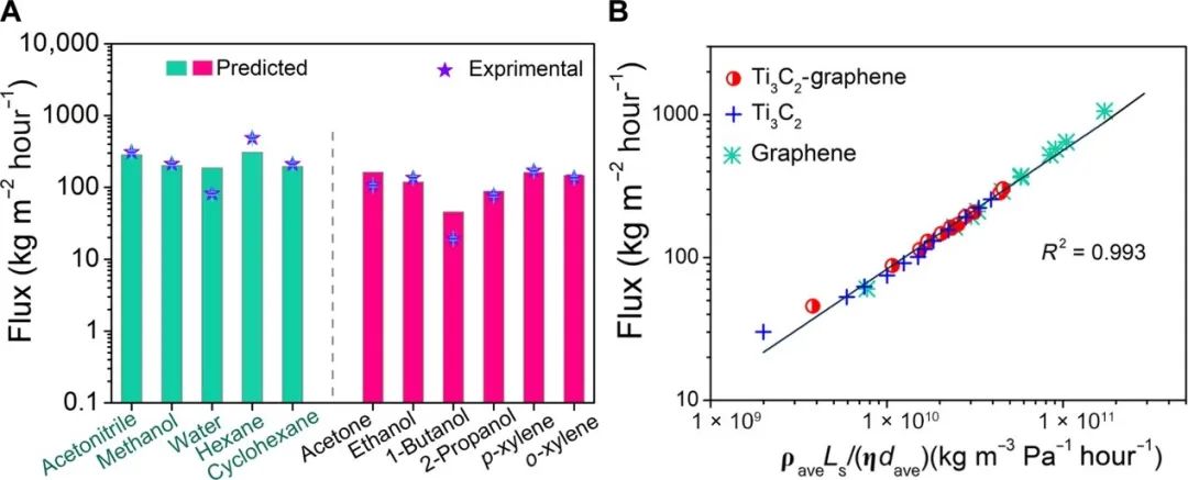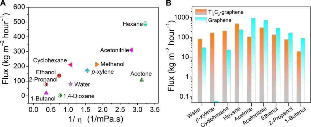 图 2 | 溶剂通过Ti3C2-石墨烯异质通道膜的渗透性。
