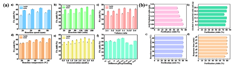 图1.实验示意图(a)FA收率测定;(b)FA的纯化。