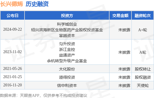 证券之星消息,根据天眼查APP于9月22日公布的信息整理,杭州德烯科技集团有限公司公布A+轮融资,融资额未披露,参与投资的机构包括科学城创业,绍兴滨海新区生物医药产业股权投资基金,富越资本。