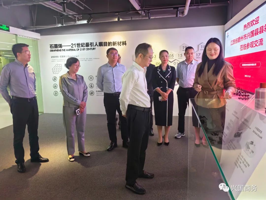 11月22日上午,李贱贵一行前往深圳市考察了深圳某新材料科技股份有限公司,详细了解了企业的发展现状、规模效益、产品特色等,与企业就石墨烯领域的技术、前景、趋势等进行深入交流,并宣传推介了我县区位优势、营商环境和优惠政策,诚邀企业来兴投资。