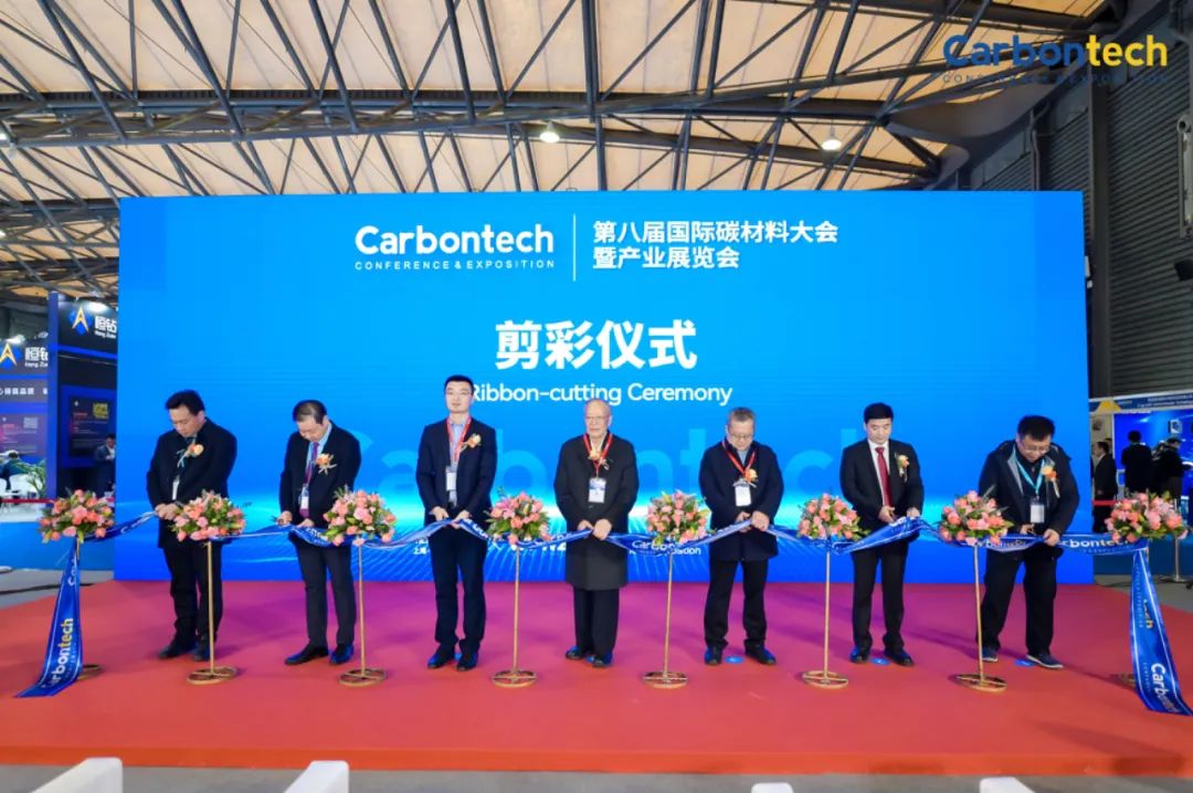 在主持人的邀请下,中国工程院薛群基院士、中国高科技产业化研究会副理事长/工信部科技司原副司长阮汝祥、DT新材料CEO张立生博士、中国超硬材料网董事长石超、黑猫集团党委书记/董事长汪羽、惠丰钻石股份有限公司董事长王来福和中共方城县招商投资促进中心书记/主任崔宝中等嘉宾共同进行了剪彩,标志着第八届国际碳材料大会暨产业展览会正式开幕。