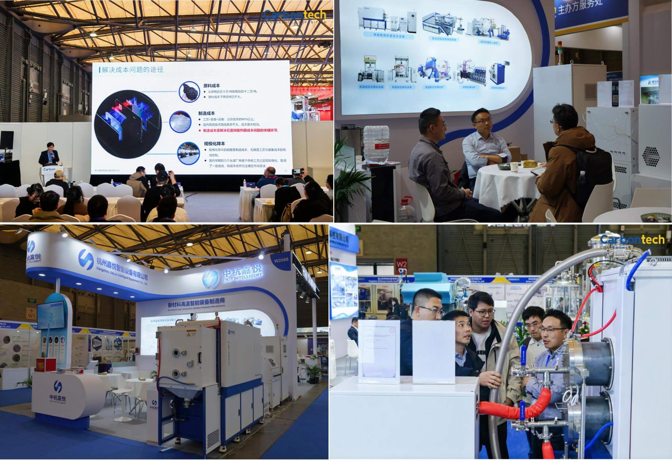 在Carbontech 2024展会现场,中杭嘉悦展位成为备受关注的亮点。展台集中展示了我们的核心技术与设备,并通过实物展品的动态演示让观众亲身体验产品性能。此外,为增加互动性,我们还设置了抽奖活动,吸引了众多观众参与,展位现场人流如织,气氛热烈。