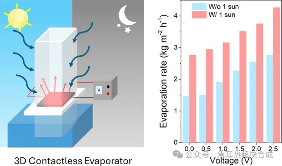 3.焦耳加热辅助技术的研究前景:焦耳加热辅助技术通过低电压电热与光热协同作用,大幅提升蒸发效率,特别适用于夜间或低光条件。这种技术为实现全天候、抗盐结垢的海水淡化提供了新思路。