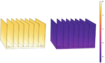 经第三方验证的建模表明,在散热器上涂覆 THERMAL-XR® 可使散热器的尺寸缩小 39%,同时保持同等的散热性能,从而有可能节省重量和材料成本。图 2 显示,涂有 THERMAL-XR® 的散热器达到的最高温度为 62 摄氏度,比未涂有 THERMAL-XR® 的同等尺寸散热器达到的最高温度 80 摄氏度低 23%。图 3 显示,涂有 THERMAL-XR® 的散热片在宽度上比未涂 THERMAL-XR® 的散热片小 39%,但其性能却与未涂 THERMAL-XR® 的散热片相同。