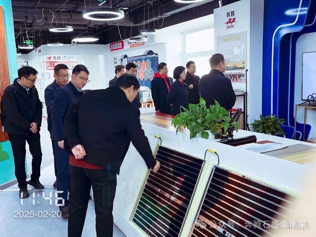 新年伊始,北京奔腾石墨烯全球运营总部迎来了孝感市孝南区委书记张全民一行领导的参观指导,这也是张全民书记新年伊始走访的第一家企业。随行的有孝感市孝南区委副书记刘俊军、区政府党组成员、副区长徐建军、区税务局局长何兵、区商务局党组书记程俊军、东山头党工委书记周日华、区商务局党组成员、招商服务中心主任杨叶林,陪同的有孝感市驻北京联络处肖艳霞主任、文俊副主任、湖北全洲集团董事长孙芳洲。公司董事长戴总、余总热情接待了张书记一行人,商务部吕经理给大家做了详细的介绍。